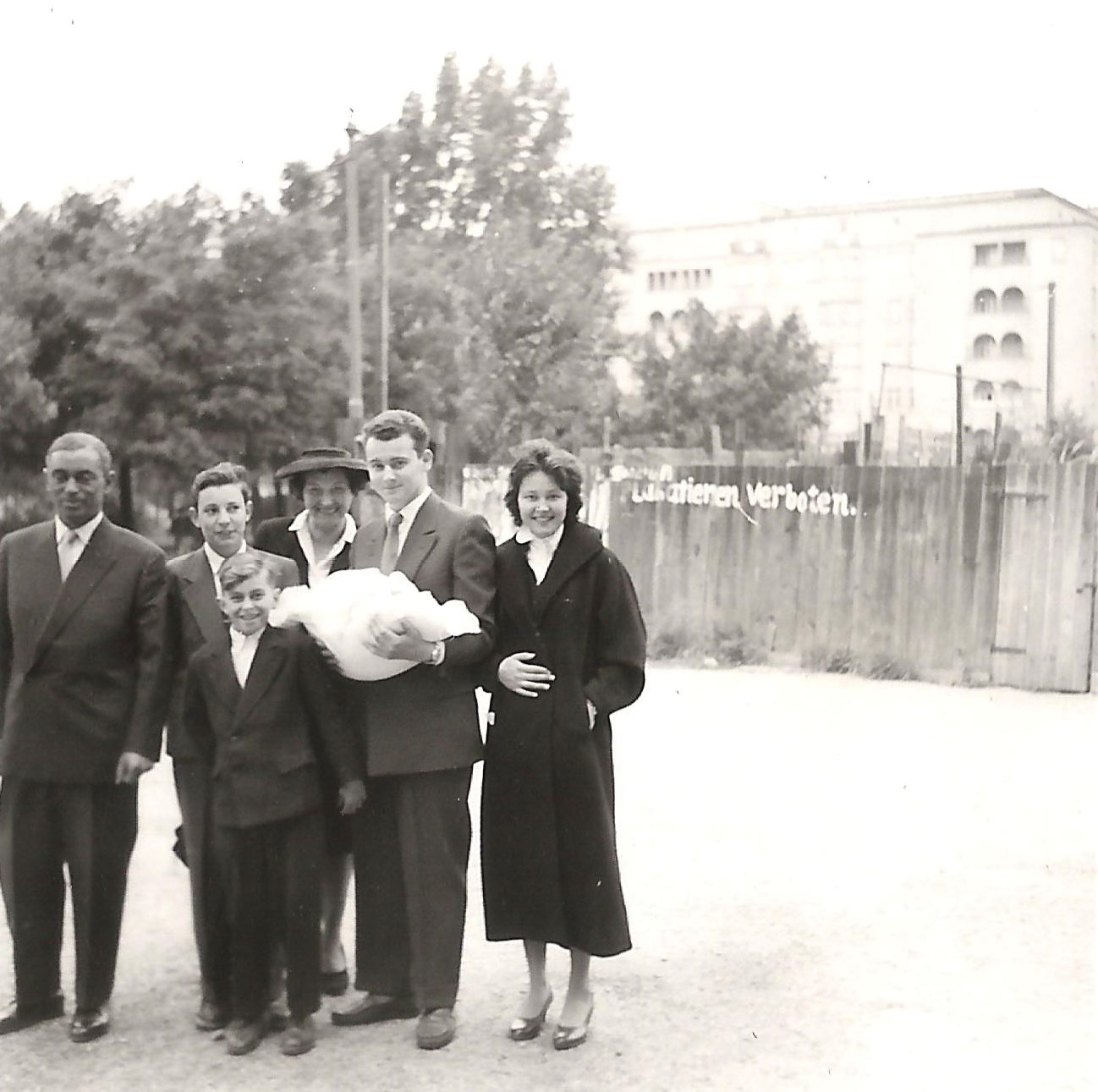Von links Pa (Karl *04), Wolfi, Gottfried, Grossmama (Amalie *15), Erik *33 mit Meret, Dorle *34.